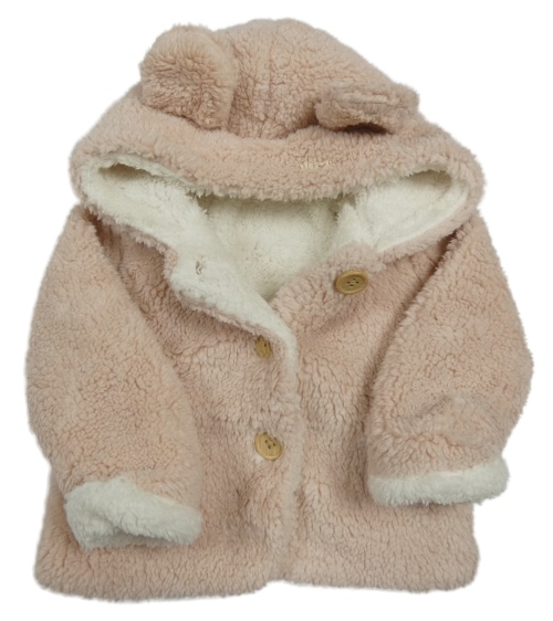 Růžový huňatý zateplený kabát s kapucí Matalan