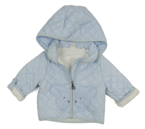 Světlemodrá prošívaná šusťáková zateplená bunda s medvědem a kapucí iDo