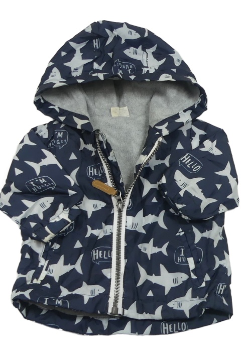 Tmavomodrá šusťáková podzimní bunda se žraloky a kapucí F&F