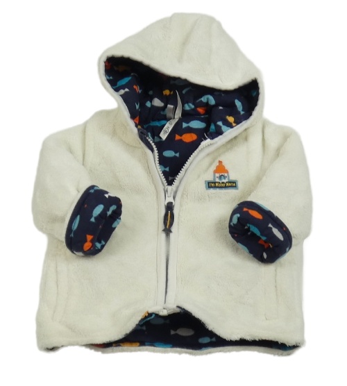 Smetanová plyšová zateplená bunda s nášivkou a kapucí ORCHESTRA