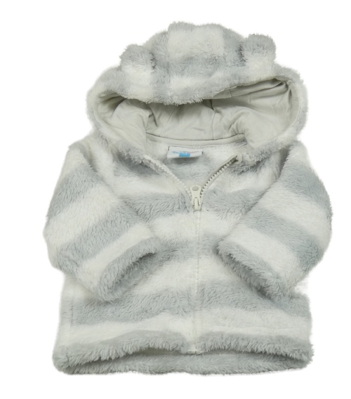 Šedo-bílá pruhovaná chlupatá bunda s kapucí Topomini