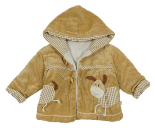 Béžový sametový zateplený kabátek s pejskem a kapucí