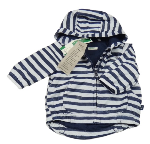 Nové - bílo-tmavomodrá pruhovaná šusťáková jarní bunda s kapucí Benetton