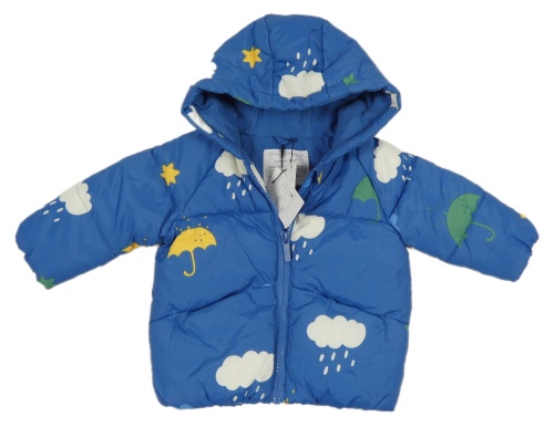 Nová - modrá prošívaná šusťáková zimní bunda s obláčky a deštníky a kapucí PRIMARK