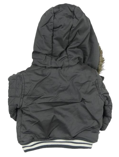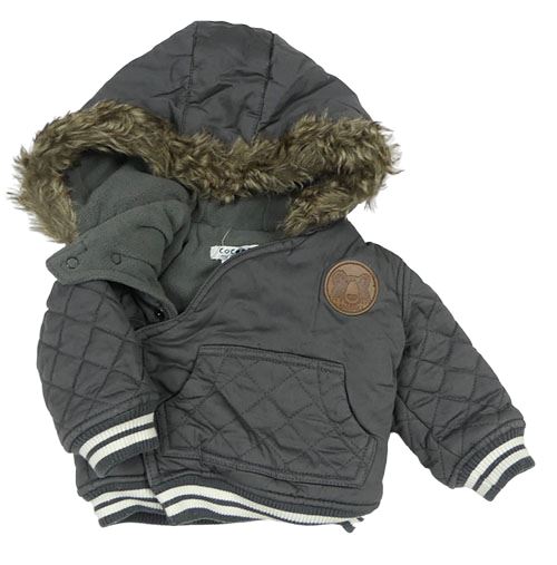 Šedá plátěná zimní bunda s nášivkou a kapucí