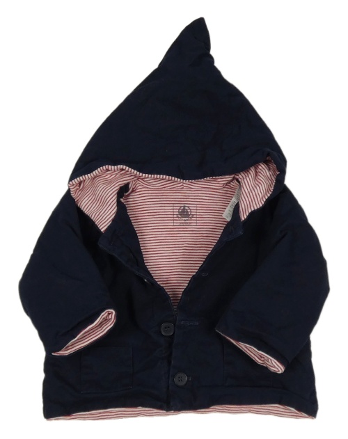 Tmavomodrá plátěná zateplená bunda s kapucí Petit Bateau