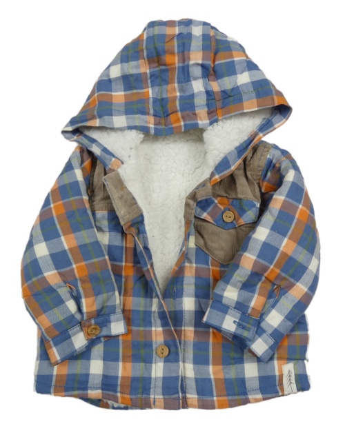 Modro oranžová kostkovaná zateplená košilová bunda s kapucí Mothercare