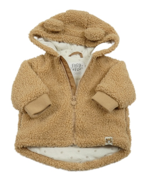 Béžový huňatý zateplený kabátek s kapucí F&F