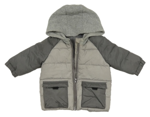 Šedo-tmavošedá šusťáková zimní bunda s kapucí