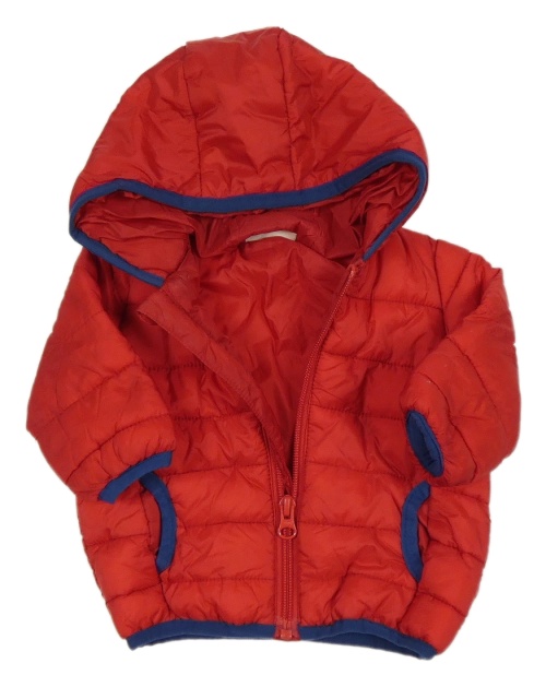 Červená prošívaná šusťáková zateplená bunda s kapucí Next