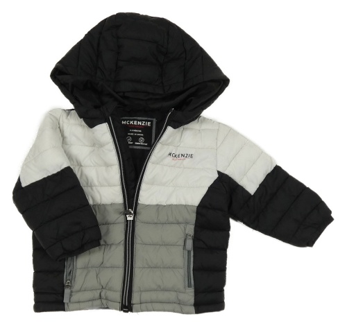 Černo-bílo-šedá prošívaná šusťáková zateplená bunda s kapucí McKenzie