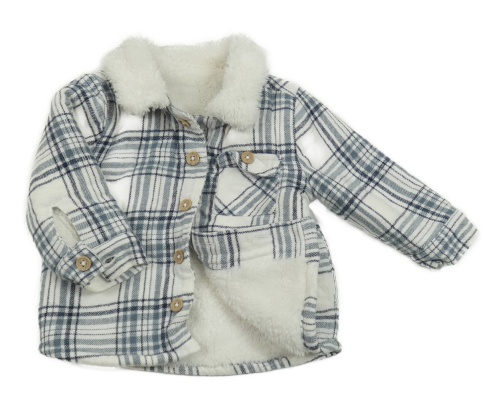 Šedomodro-tmavomodro-bílá kostkovaná košilová zateplená bunda Tu