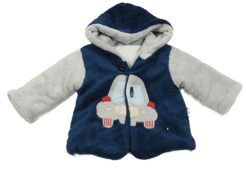 Tmavomodro-šedá chlupatá propínací podšitá mikina s autem a kapucí