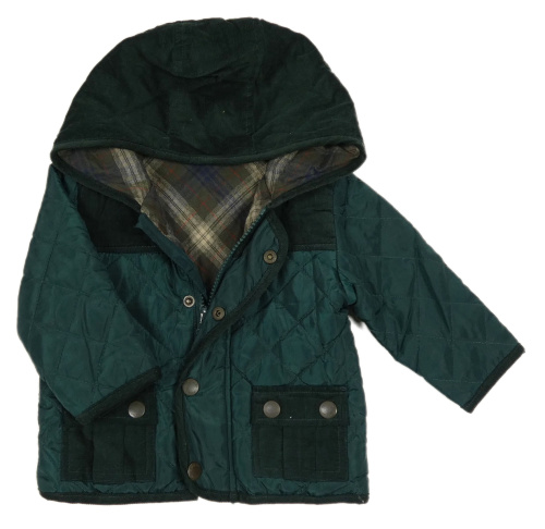 Tmavozelená šusťákovo/manšestrová zimní bunda s kapucí M&S