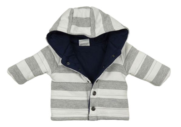 Šedo-bílý pruhovaný zateplený kabátek s kapucí Topomini