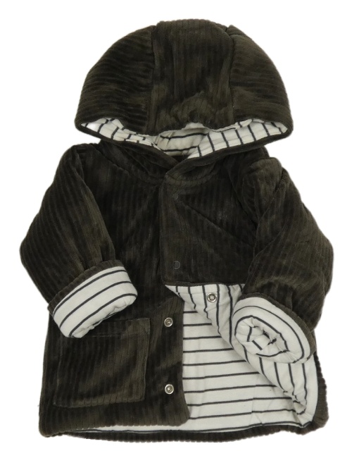 Hnědá žebrovaná sametová zateplená propínací mikina s kapucí M&S