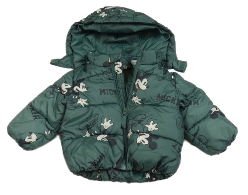 Tmavozelená šusťáková zimní bunda s Mickeym a kapucí H&M