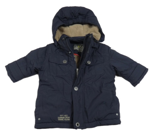 Tmavomodrá šusťáková zimní bunda s kapucí