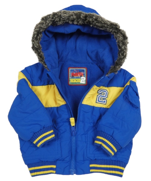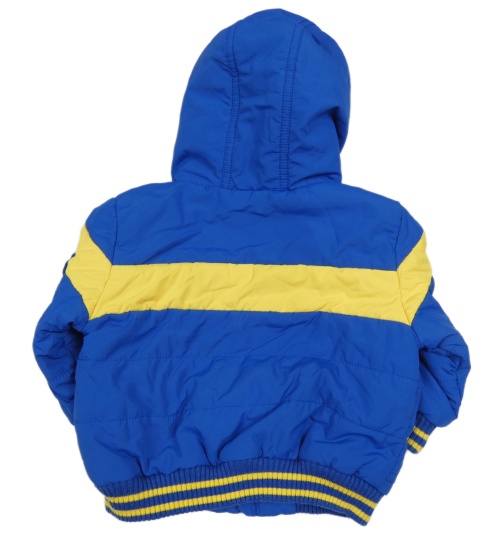 Modro-žlutá šusťáková pod/zimní bunda s číslem a kapucí M&S