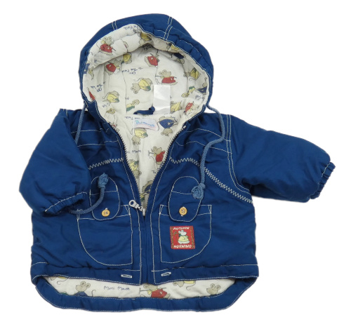 Tmavomodrá šusťáková zimní bunda s kapucí Prémaman