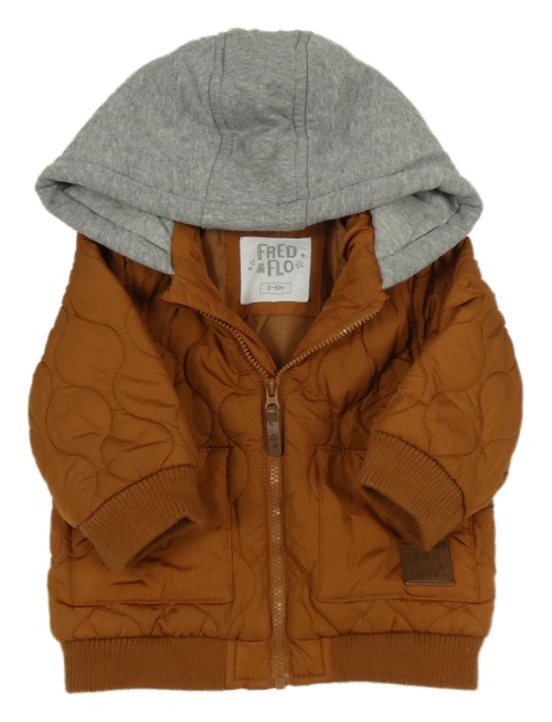 Hnědá šusťáková prošívaná zateplená bunda s teplákovou kapucí F&F