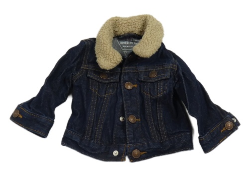 Tmavomodrá riflová bunda s huňatým límečkem RIVER ISLAND