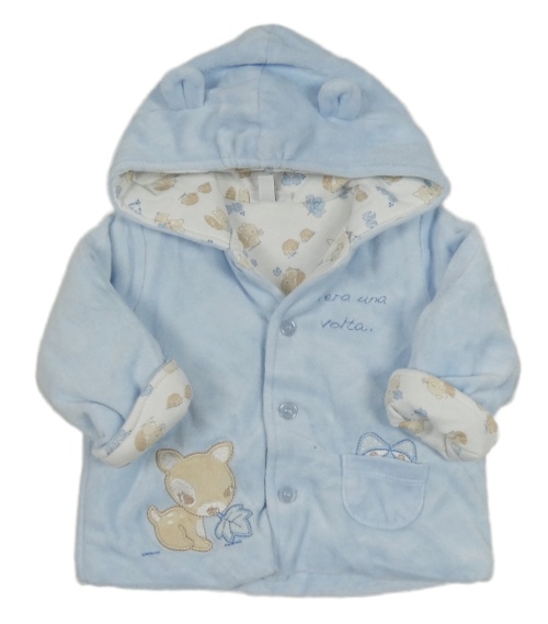 Světlemodrý sametový zateplený kabátek se srnkou a kapucí