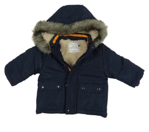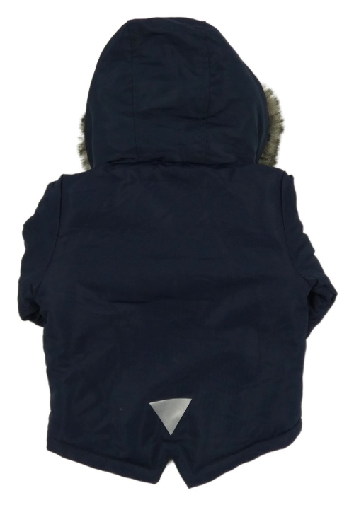 Tmavomodrá šusťáková zimní bunda s kapucí s kožešinou Primark