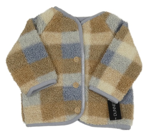 Nové - Béžovo-modrá kostkovaná huňatá podšitá bunda Dunnes