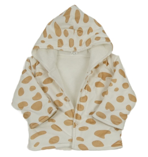Bílo-hnědá vzorovaná sametová zateplená mikina s kapucí