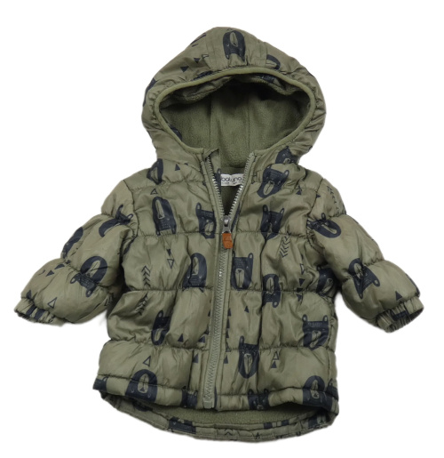 Khaki šusťáková zimní bunda s medvídky a kapucí