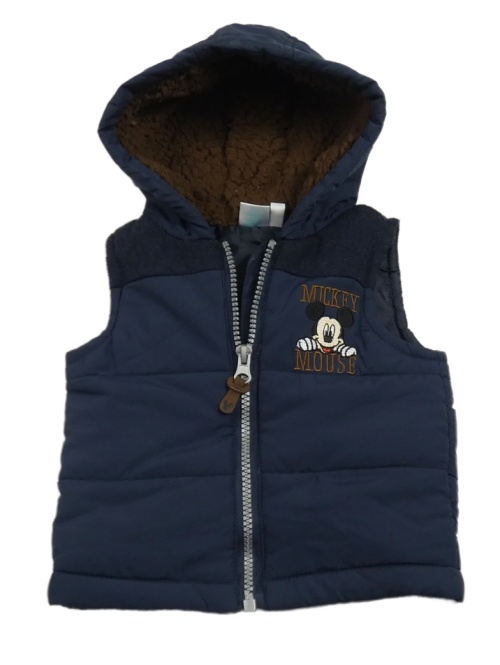 Tmavomodrá šusťáková zateplená vesta s Mickeym a kapucí Disney