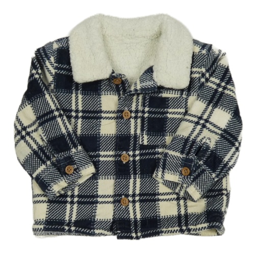 Tmavomodro-smetanová kostkovaná manšestrová zateplená košilová bunda Tu