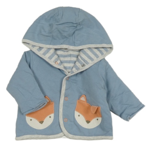 Světlemodrý zateplený kabátek s liškami/kapsami a kapucí