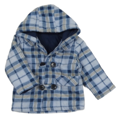 Modro-tmavomoodro-hnědý kostkovaný fleecový zateplený kabátek s kapucí Goldigga