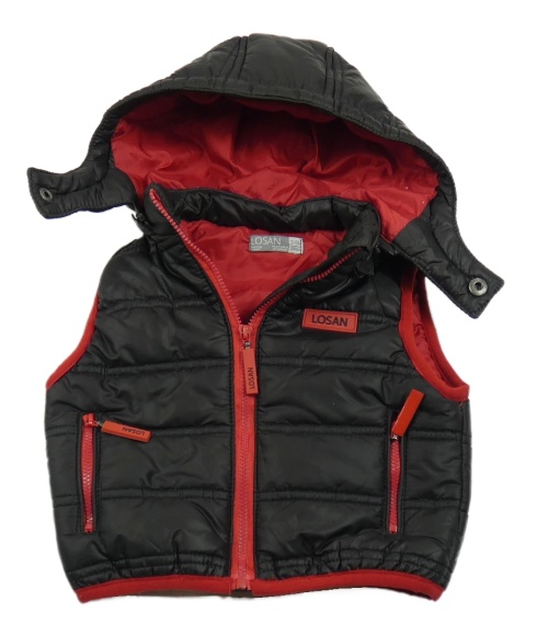 Černá šusťáková zateplená vesta s nášivkou a kapucí Losan