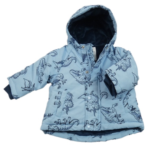 Světlemodrá šusťáková zimní bunda s dinosaury a kapucí Primark