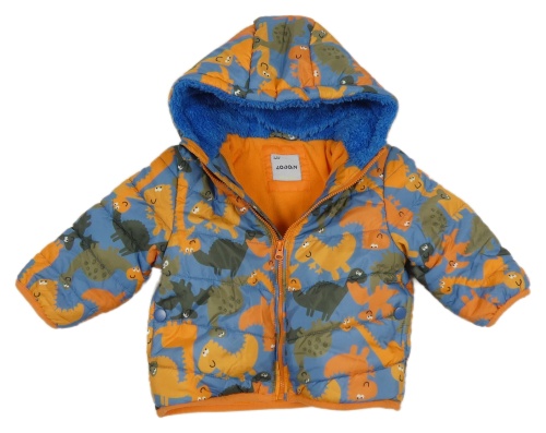 Modrá šusťáková zimní bunda s dinosaurem a kapucí Lodan