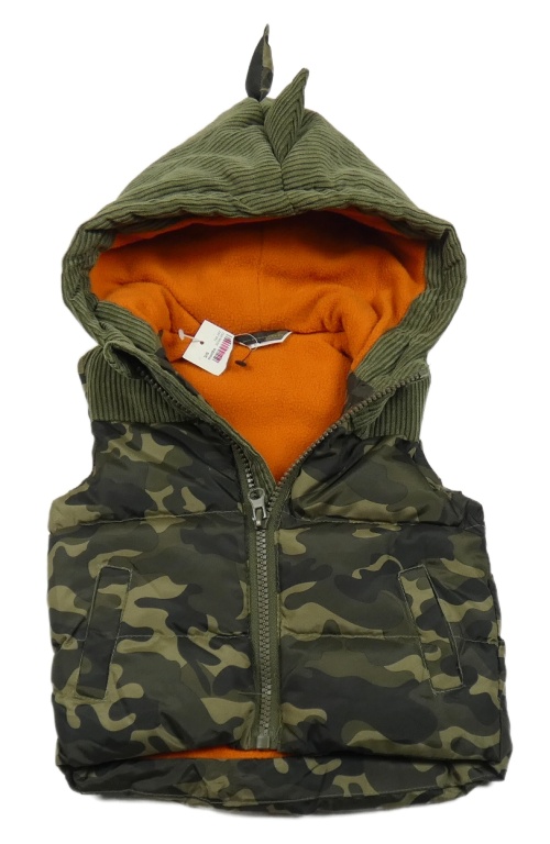 Khaki-army manšestrovo/šusťáková zateplená vesta s kapucí M&Co.