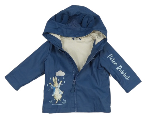 Tmavomodrá voděodolná jarní bunda s králíčkem a kapucí