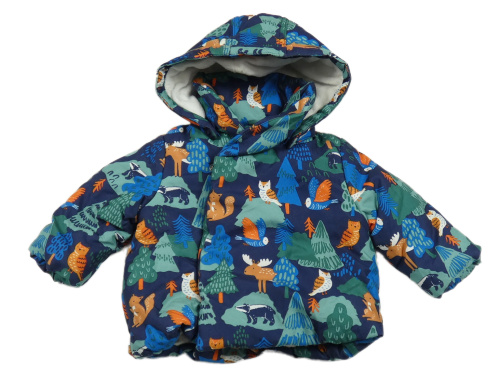 Tmavomodrá šusťáková zimní bunda se zvířátky a odepínací kapucí John Lewis