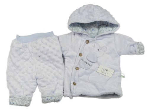 2Set - Světlemodrý plyšový zateplený kabátek se slonem a kapucí + minky kalhoty