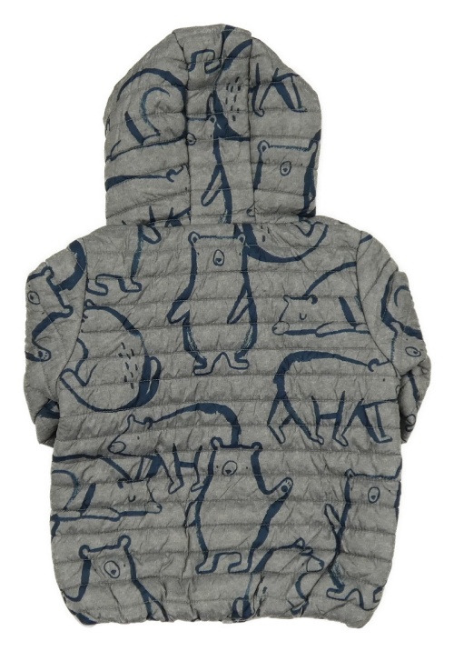 Šedo-modrá vzorovaná šusťáková prošívaná zateplená bunda s kapucí Next