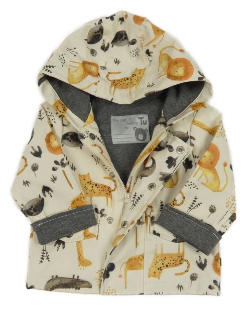 Krémová nepromokavá jarní bunda se zvířaty a kapucí Tu