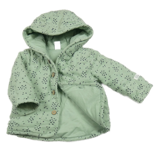 Světlezelená vzorovaná plátěná zateplená bunda s kapucí Topomini