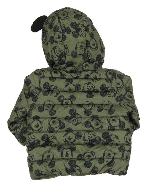 Tmavozeleno-černá šusťáková zateplená bunda s Mickeym a kapucí + rukavice Disney