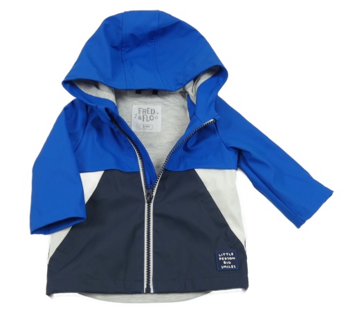 Safírovo-tmavomodro-bílá nepromokavá jarní bunda s nášivkou a kapucí F&F