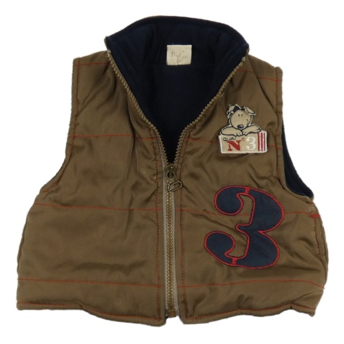 Bronzová prošívaná šusťáková zateplená vesta s číslem a pejskem