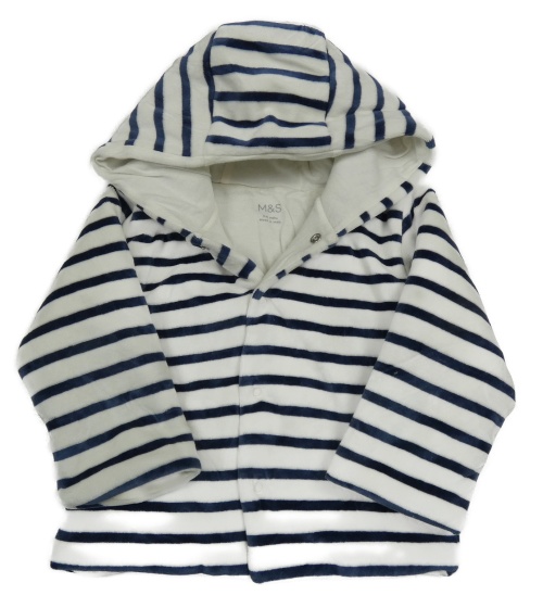 Bílo-tmavomodrý sametový propínací zateplený kabátek s kapucí M&S