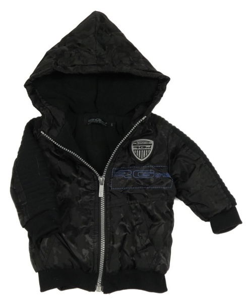 Černá šusťáková army zateplená bunda s nápisem a kapucí